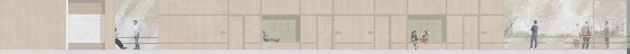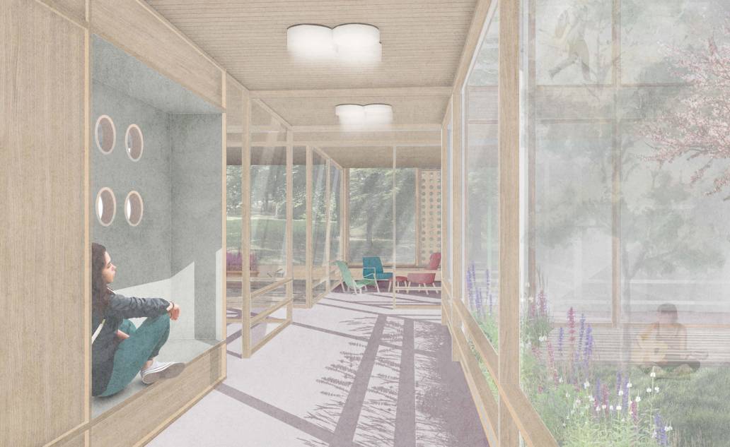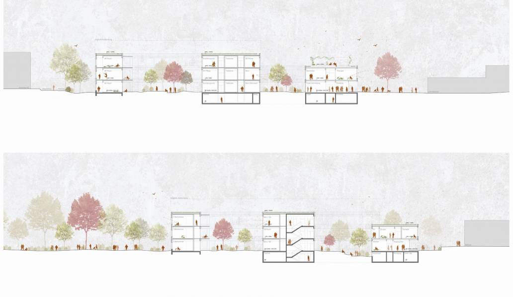 Keine zweihüftige Gangerschließung, sondern Erschließung als atmosphärischer Lebens- und Genesungsraum mit begleitendem stimmungsvollem Grün