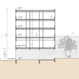 Der sachliche Neubau steht im unprätentiösen Dialog zum bestehenden LKH Gelände. Ein Basement und zukünftig zwei Bürotürme bilden die klare Kubatur. Das Gebäude öffnet sich im Sockelgeschoß sowohl in horizontaler als auch in vertikaler Richtung. Der Einschnitt im EG in horizontaler Richtung lässt einen Vorplatz entstehen, der durch die Öffnungen (Höfe) in vertikaler Richtung attraktiviert wird, diese sorgen für großzügige Belichtung und einem angenehmen Grünraum. Markant entwickelt sich der Büroturm aus dem Sockel. Die Erweiterung für einen zweiten Büroturm ist im Bereich des östlichen Stiegenhauses vorgesehen.